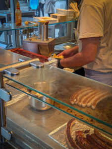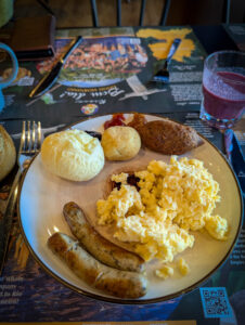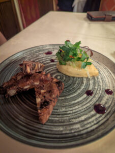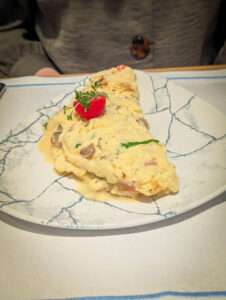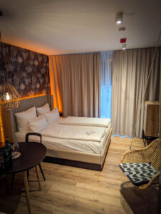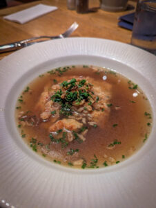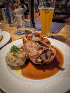 On arrival at the hotel (finding the car park was not easy) we got to our room then headed for dinner. Everywhere was really busy, but we found a place that sells unlimited ribs (and other things) which got excellent reviews and was absolutely packed. They gave us a 9pm table, so we wandered the dark streets for half an hour before feeding. Extremely good food and beer. Good choice.