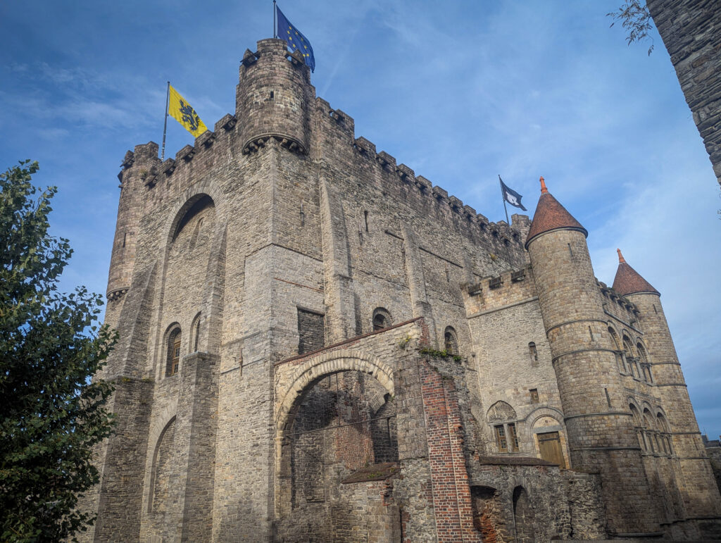 The plan for the day was to buy a tourist pass which gained us entry to numerous paid attractions, and free use of the water taxi and all land-based public transport. After collecting these (which took a while as the chap in Tourist Information was very keen we took all of his maps despite already having them. Once we got away from him, we headed to the Gravensteen, Ghent’s castle. Remarkably tidy and well maintained, there was lots to look at from the usual crenelations, to a torture dungeon, a display of weaponry, and a “secreet” bunker used by the Nazis. Worth a visit.