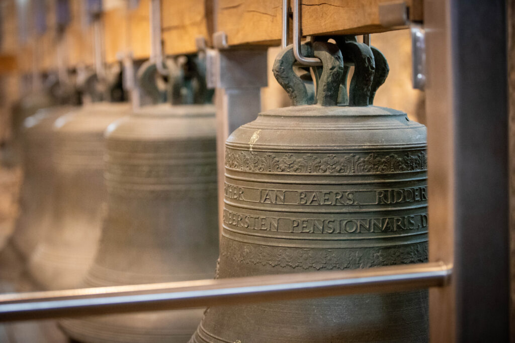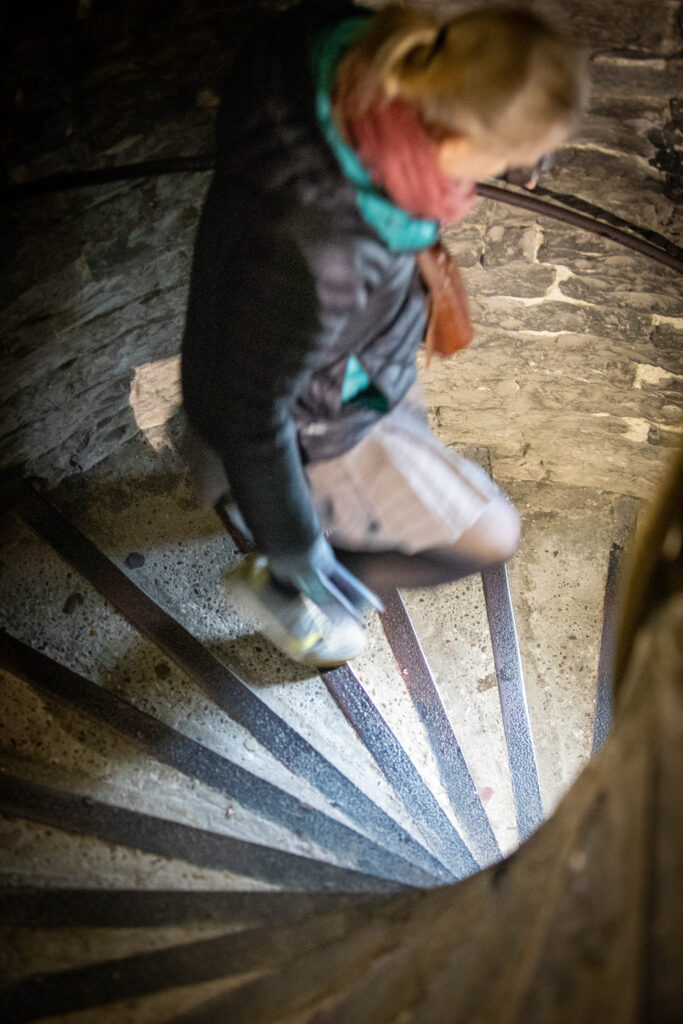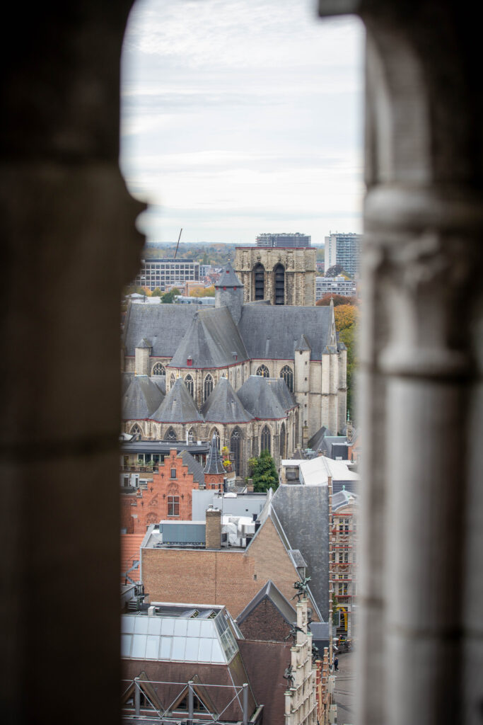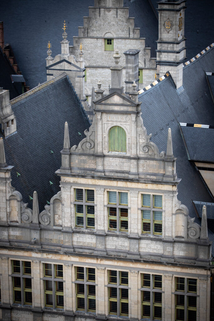 We kept going, onward to the Belfort, a huge tower which you could climb for an aerial view of Ghent. The good news was it was a lift up and stairs down, with various displays of bell and chime-related things on each of 3 floors between the top and bottom. The main bell itself was chimed using a mechanism much like a music box, but on a much bigger scale. Each hole in the barrel was hand cut square, there were thousands of them.