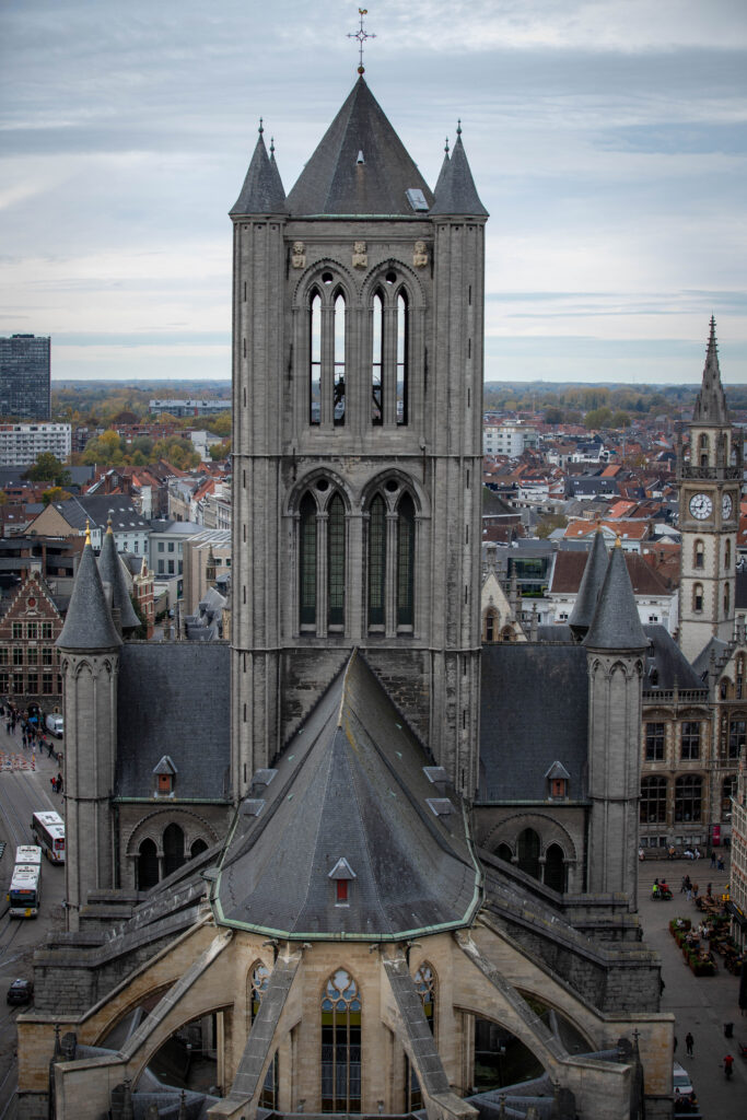 From here we walked to St-Baafskathedral, Ghent’s cathedral. Not quite the scale of Koln’s cathedral the day before but more ornate, and in the back was a famous painting by Reuben and a very detailed altar piece comprising of numerous paintings depicting a religious scene of some kind. It was intricate in its quality, and vibrantly coloured despite its obvious age.