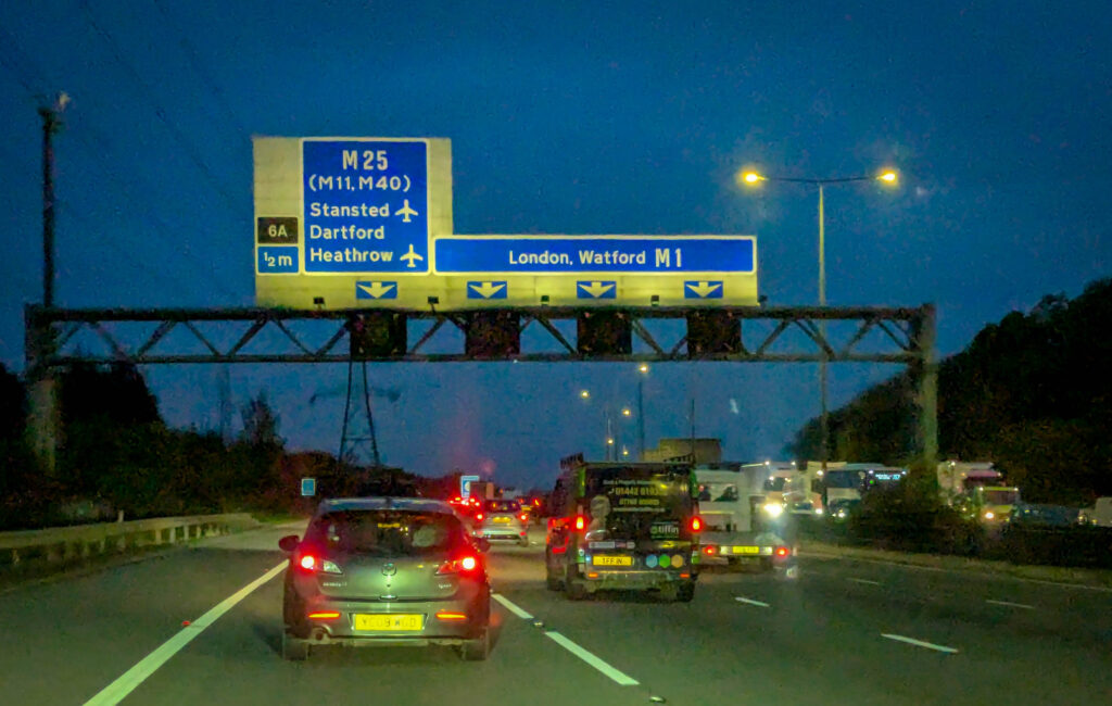 The M62 was fine at around 4pm, and surprisingly the M1 wasn’t too bad either despite hitting Sheffield around 5pm and Luton around 6pm. The M25 was typically unpleasant, with lots of stop-start traffic, idiots driving way to close to each other, the odd car weaving in and out of lanes at double the speed of everyone else, and cars pulling in front of trucks causing them to emergency brake.