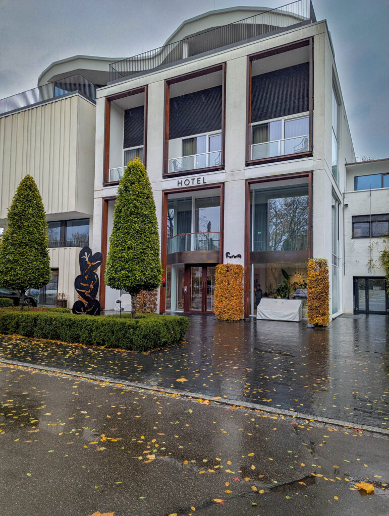 We needed exercise, so decided to head out for a walk in the pouring rain and high winds – full waterproofs were deployed. Once out it didn’t seem so bad, and we followed a guided tour route through the old part of Konstanz we found on Trip Advisor. Unfortunately we had no idea what any of the stops were, other than usually old buildings or statues. We also stopped off in a few shops to warm up, and for coffee and cake – though the coffee wasn’t, and we had no idea what it was (the lady who served said it was “like” coffee – I’m not sure her definition of like is the same as mine).