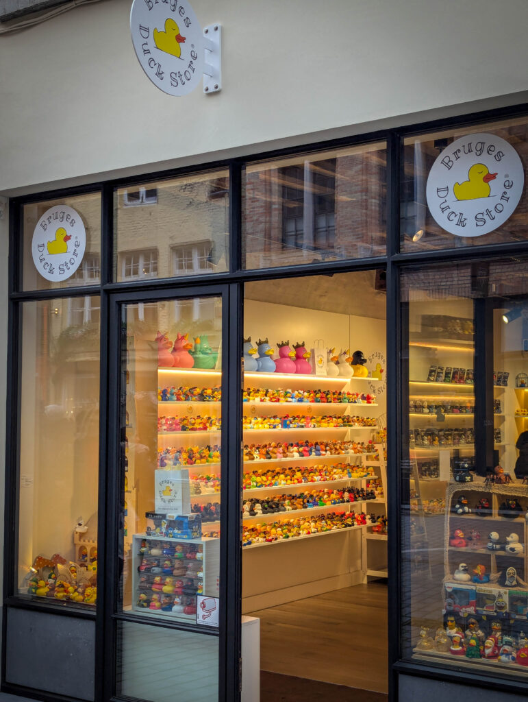 So, a wander around Bruges. We followed another guided tour itinerary, this one took us in duplicated loops – perhaps to make those who did pay think that Bruges is a lot bigger than it is, and have a lot more bridges than it does (and it has a lot!) Our summary was simple – Ghent is a LOT nicer (though we didn’t find a duck shop in Ghent).